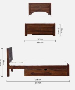 Segur Solid Wood Single Bed With Drawer Storage In Provincial Teak Finish