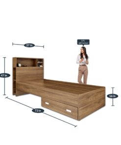 Boltera Single Bed With Headboard Storage & Drawer in Dark Walnut Finish