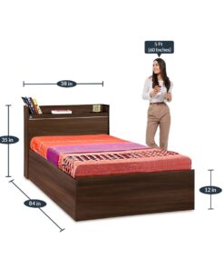 Kaze Single Bed With Box Storage In Wenge Finish