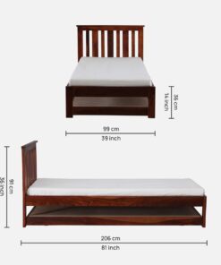 Freya Solid Wood Single Bed with Trundle in Provincial Teak Finish
