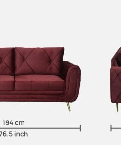 Atlantis 3 Seater Velvet Sofa in Wine Red Colour