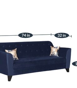 Bali 3 Seater Sofa In Velvet Blue Colour