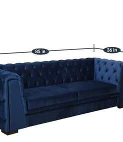 Derince 3 Seater Velvet Sofa In Royal Blue Color