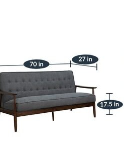 Jazmin 3 seater Sofa in Dark Grey Colour with Brown Oak Finish