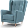 The seat is supported by wave springs and foam. Only the best materials have been used, the seams and narrow wooden feet make the armchair look very elegant.