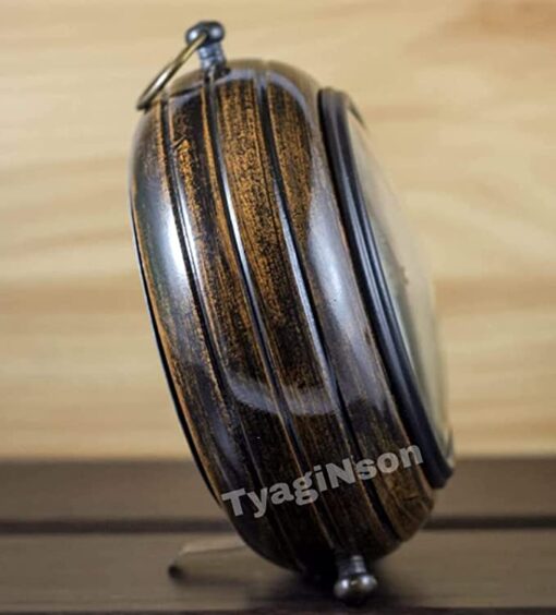 Brand TYAGInColour BrownnStyle AntiquenProduct Dimensions 5W x 15H CentimetersnShape RoundnMaterial WoodnMounting Type TabletopnAlarm Clock NonNumber of Items 1nOperation Mode Mechanical