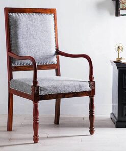Shilpi Wooden Arm Chair with Cushions(Natural Teak) – Indian Sheesham Wood with Special PU Polish